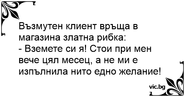 - Вземете си я! Стои при мен вече цял месец, а не ми е изпълнила нито едно желание!