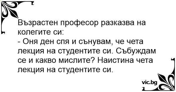 - Оня ден спя и сънувам, че чета лекция на студентите си. Събуждам се и какво мислите? Наистина чета лекция на студентите си.