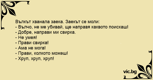 - Вълчо, не ме убивай, ще направя каквото поискаш!