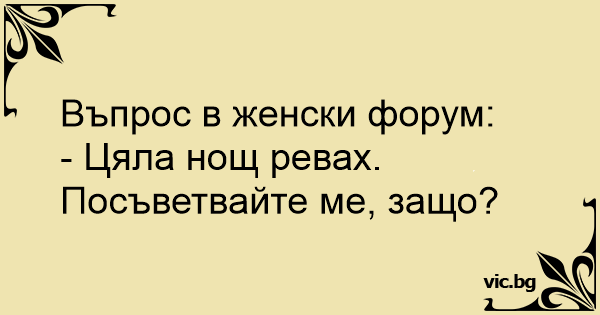 Въпрос в женски форум: "Цялата нощ съм плакала. Посъветвайте ме, заради какво е?"
