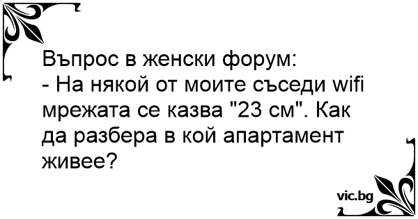 - На някой от моите съседи wifi мрежата се казва "23 см". Как да разбера в кой апартамент живее?