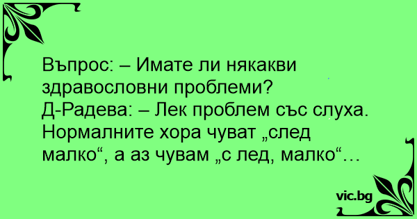 Д-Радева: – Лек проблем със слуха. Нормалните хора чуват „след малко“, а аз чувам „с лед, малко“…