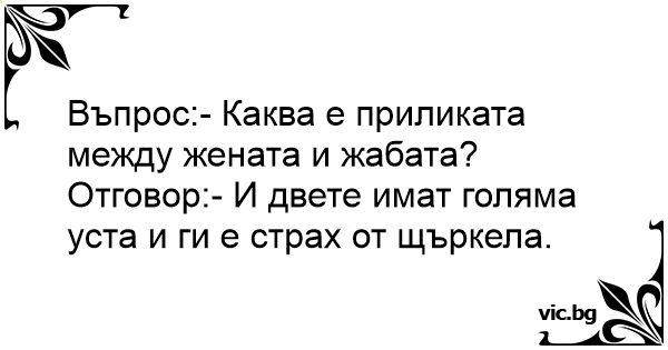 Отговор:- И двете имат голяма уста и ги е страх от щъркела.