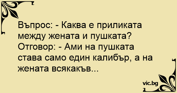 Отговор: - Ами на пушката става само един калибър, а на жената всякакъв...