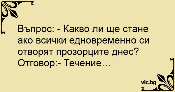 Въпрос: - Какво ли ще стане ако всички едновременно си отворят прозорците днес?