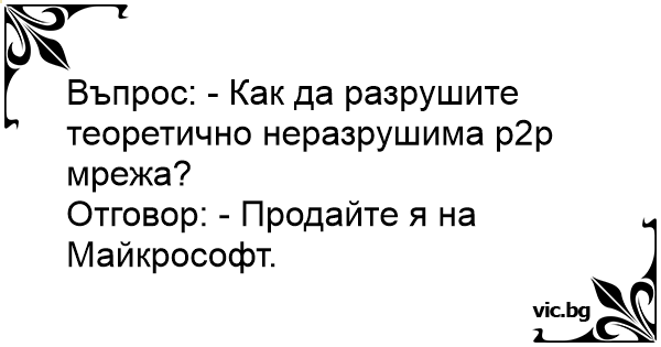 Въпрос: - Как да разрушите теоретично неразрушима p2p мрежа?