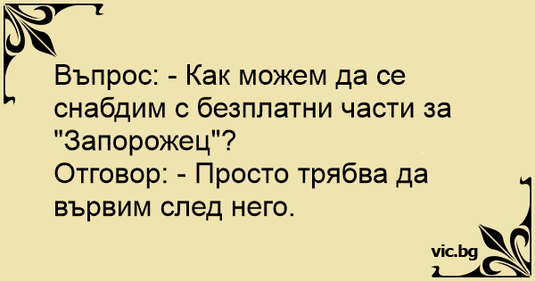 Въпрос: - Как можем да се снабдим с безплатни части за "Запорожец"?