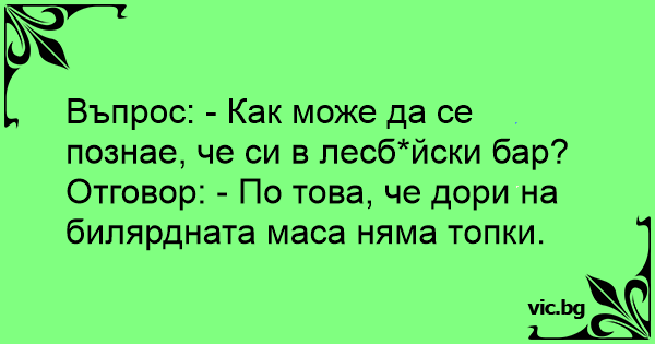 Въпрос: - Как може да се познае, че си в лecбийckи бар?