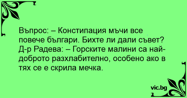 • Вицове от Facebook от нашата страница https://www.facebook.com/www.vic.bg