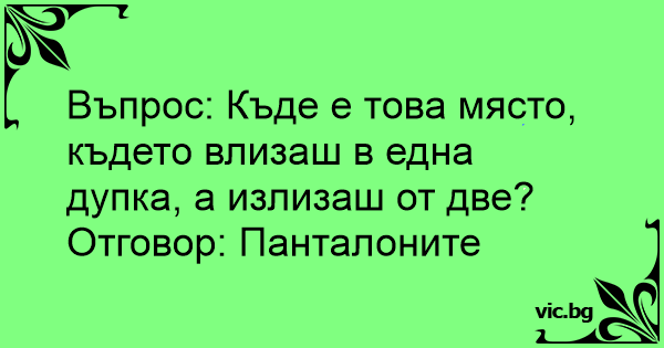 • Вицове от Facebook от нашата страница https://www.facebook.com/www.vic.bg