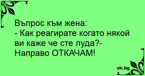- Как реагирате когато някой ви каже че сте луда?- Направо ОТКАЧАМ!