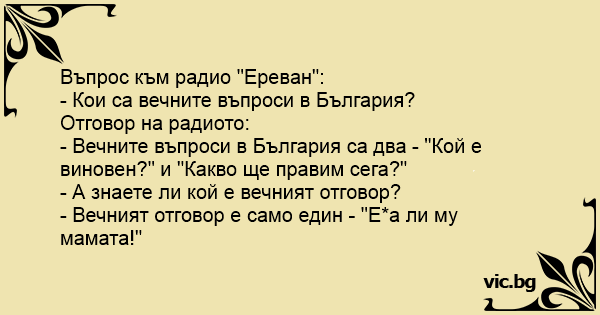 - Вечният отговор е само един - "Eбa ли му мамата!"