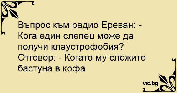 Въпрос към радио Ереван: - Кога един слепец може да получи клаустрофобия?