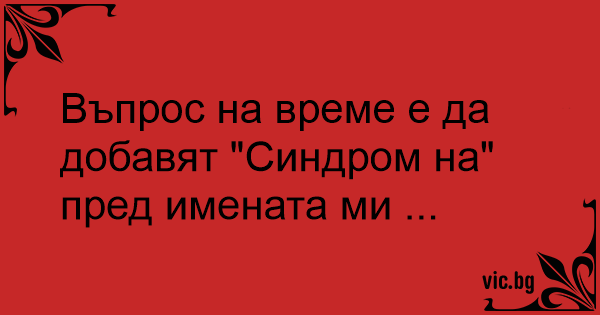 Въпрос на време е да добавят "Синдром на" пред имената ми ...