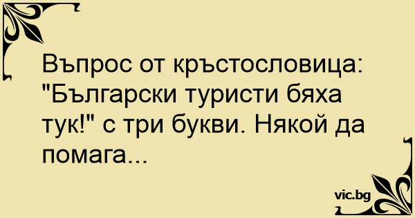 "Български туристи бяха тук!" с три букви. Някой да помага...