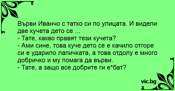 Върви Иванчо с татко си по улицата. И видели две кучета дето се ...