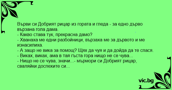 - Хванаха ме едни разбойници, вързаха ме за дървото и ме изнасилиха.