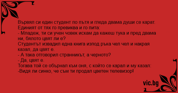 Студентът извадил една книга изпод ръка чел чел и накрая казал, да цвят е.