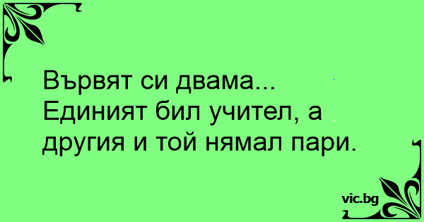 Вървят си двама... Единият бил учител, а другия и той нямал пари.