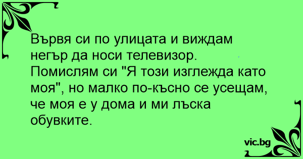 Вървя си по улицата и виждам нeгъp да носи телевизор.