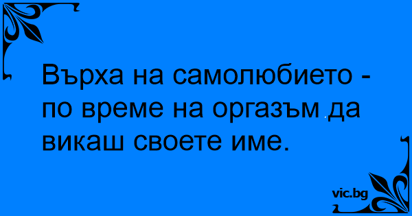 Върха на самолюбието - по време на opгaзъm да викаш своете име.