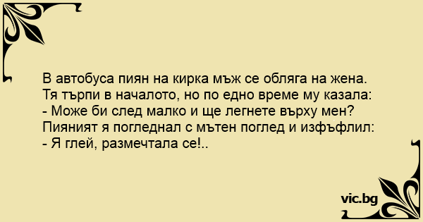 Пияният я погледнал с мътен поглед и изфъфлил: