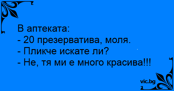 Оди некој дечко во трафика и му вика на продавачот: - Дајте ми 3 кондоми! - Сакате кеса? - Не бе, дај ми ги така, не е толку грда!
