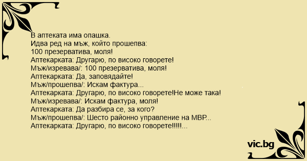 Аптекарката: Да разбира се, за кого?