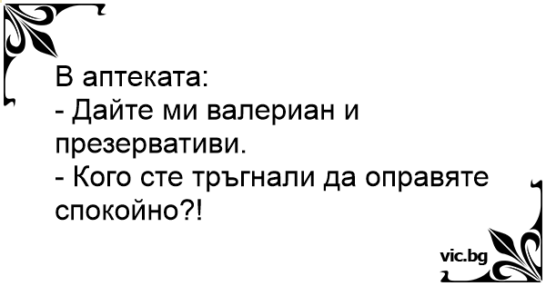 - Дайте ми валериан и презервативи.