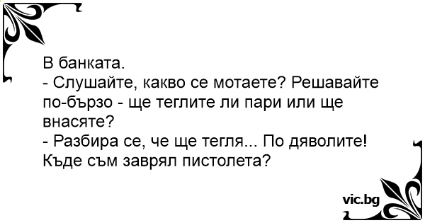 - Слушайте, какво се мотаете? Решавайте по-бързо - ще теглите ли пари или ще внасяте?