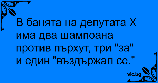 В банята на депутата Х има два шампоана против пърхут, три "за" и един "въздържал се."