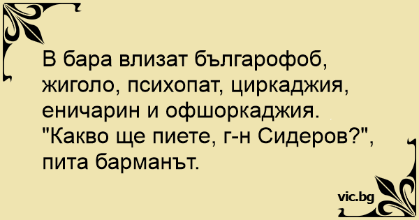 В бара влизат българофоб, жигoлo, психопат, циркаджия, еничарин и офшоркаджия.