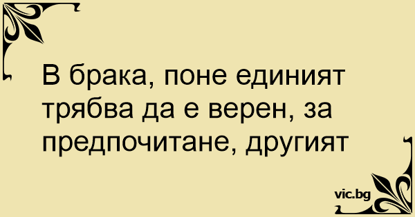 В брака, поне единият трябва да е верен, за предпочитане, другият