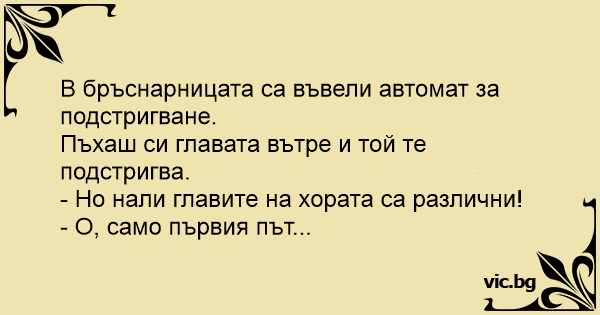 • Вицове от Facebook от нашата страница https://www.facebook.com/www.vic.bg