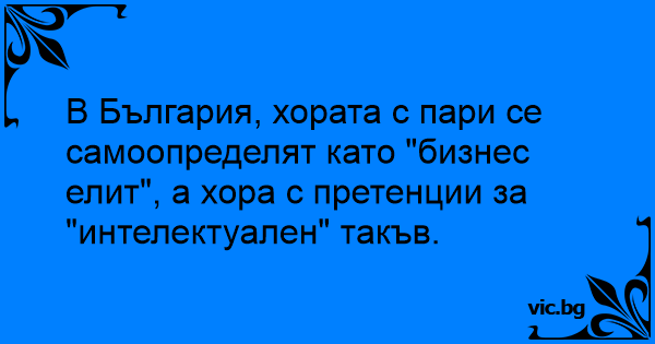 В България, хората с пари се самоопределят като "бизнес елит", а хора с претенции за "интелектуален" такъв.