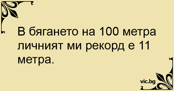 В бягането на 100 метра личният ми рекорд е 11 метра.