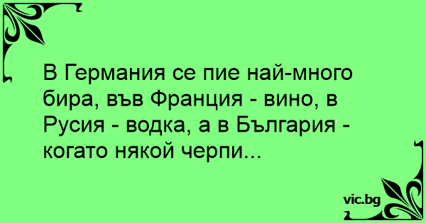 В Германия се пие най-много бира, във Франция - вино, в Русия - водка, а в България - когато някой черпи...