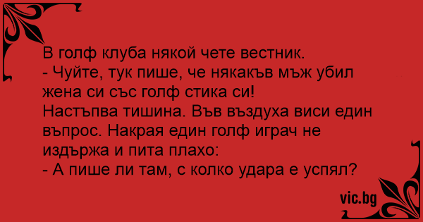 - Чуйте, тук пише, че някакъв мъж убил жена си със голф стика си!