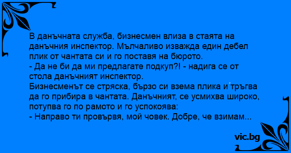 • Вицове от Facebook от нашата страница https://www.facebook.com/www.vic.bg