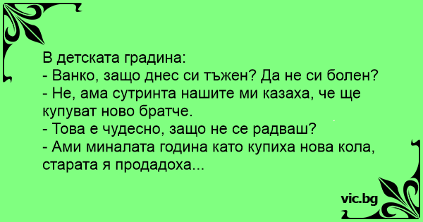 - Не, ама сутринта нашите ми казаха, че ще купуват ново братче.
