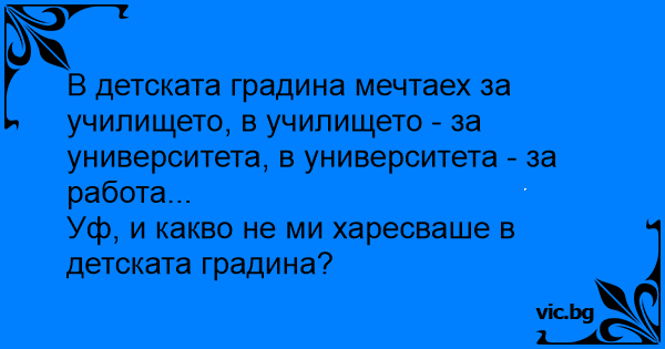 В детската градина мечтаех за училището, в училището - за университета, в университета - за работа...