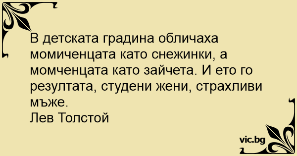 В детската градина обличаха момиченцата като снежинки, а момченцата като зайчета. И ето го резултата, студени жени, страхливи мъже.