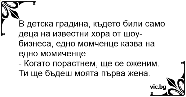 - Когато порастнем, ще се оженим. Ти ще бъдеш моята първа жена.