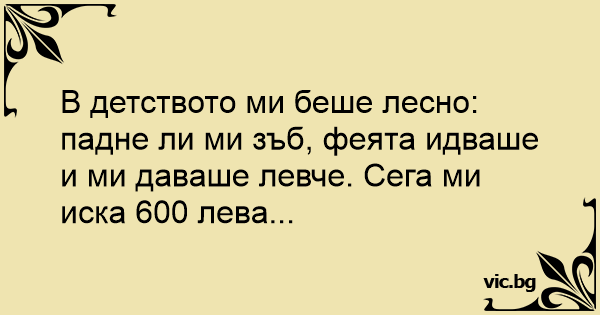 В детството ми беше лесно: падне ли ми зъб, феята идваше и ми даваше левче. Сега ми иска 600 лева...