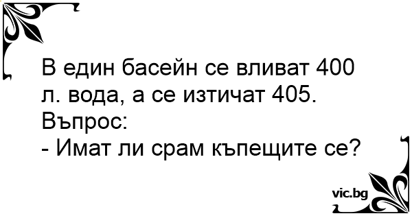 В един басейн се вливат 400 л. вода, а се изтичат 405.