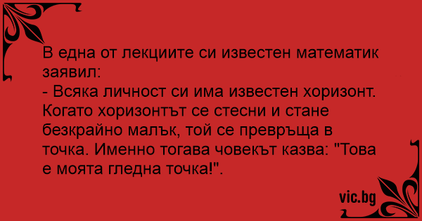 В една от лекциите си известен математик заявил: