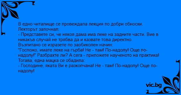 • Вицове от Facebook от нашата страница https://www.facebook.com/www.vic.bg