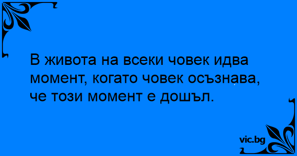 В живота на всеки човек идва момент, когато човек осъзнава, че този момент е дошъл.