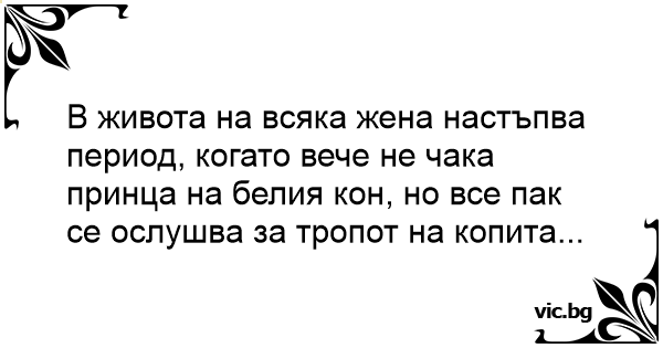 В живота на всяка жена настъпва период, когато вече не чака принца на белия кон, но все пак се ослушва за тропот на копита...