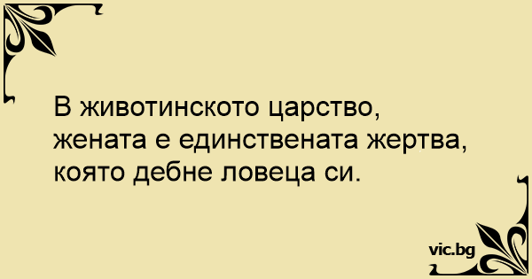 В животинското царство, жената е единствената жертва, която дебне ловеца си.